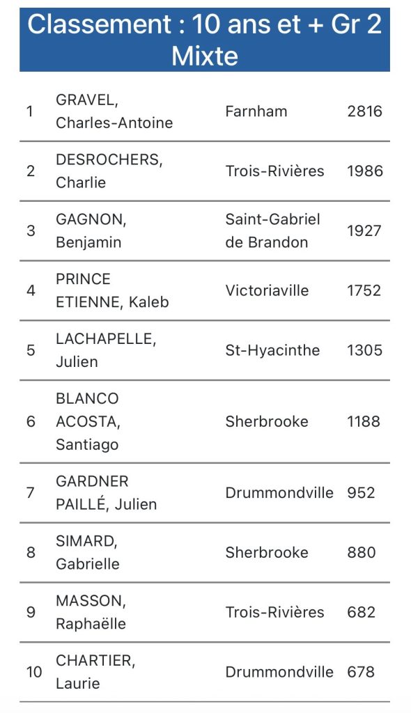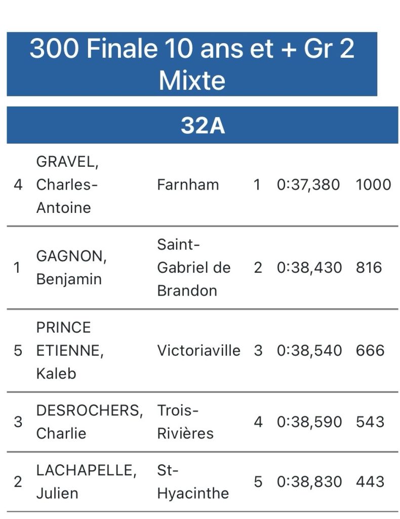 Son coéquipier Thomas Mailhot était, quant à lui, dans le groupe 4 masculin chez les 12 ans.